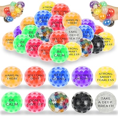 20 Pack Colorful Motivational Mini Stress Balls Set, Squishy Balls Fidget Toys for Adult, Squeeze Balls Bulk, Birthday Gifts Party Favors Goodie Bags Stuffer Anxiety Stress Relief