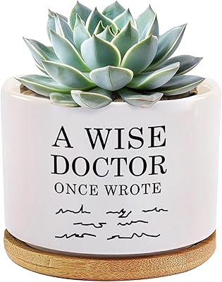 A Wise Doctor Once Wrote Ceramic Succulent Plant Pot with Tray Doctor Gifts Home Office Decor Indoor Plant Dr Graduation Gift 3.5 Inch White No Plants with Bamboo Tray