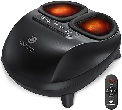 CooCoCo FSA Eligible Foot Massager with Heat, Upgrade ABS Feet Massager with Remote, Foot Massager for Neuropathy & Plantar Fasciitis, Foot Massage Machine with Base, Kneading Compression, Foot Warmer